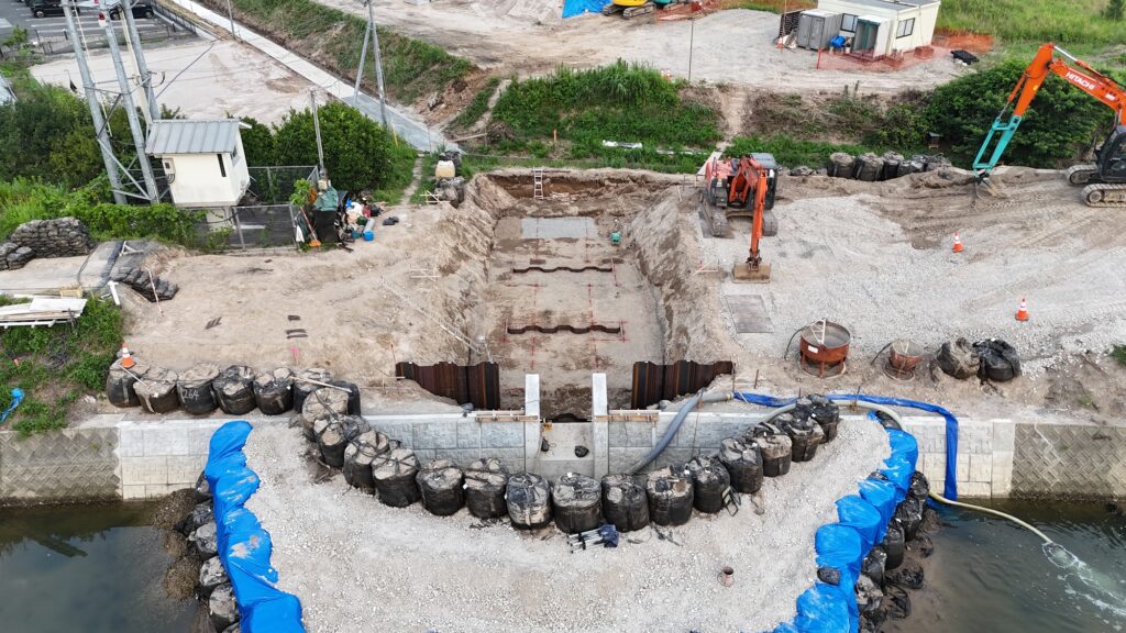 仮設工:大型土のうによる仮締切