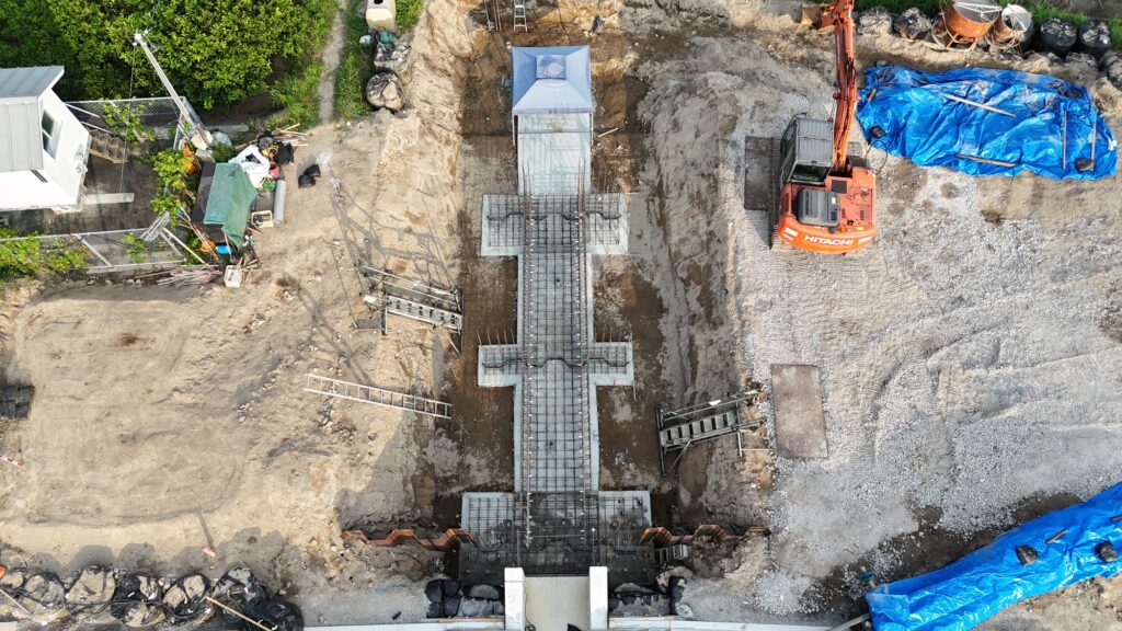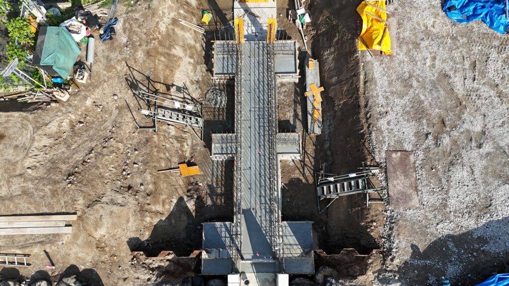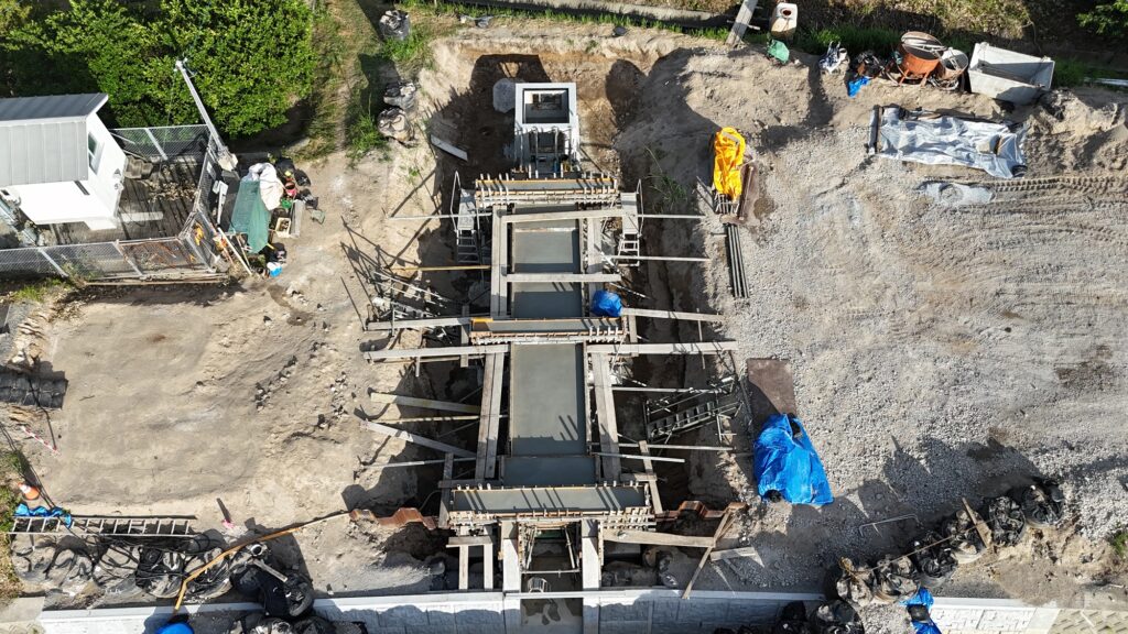 樋門工:底版コンクリート打設及び側壁配筋完了