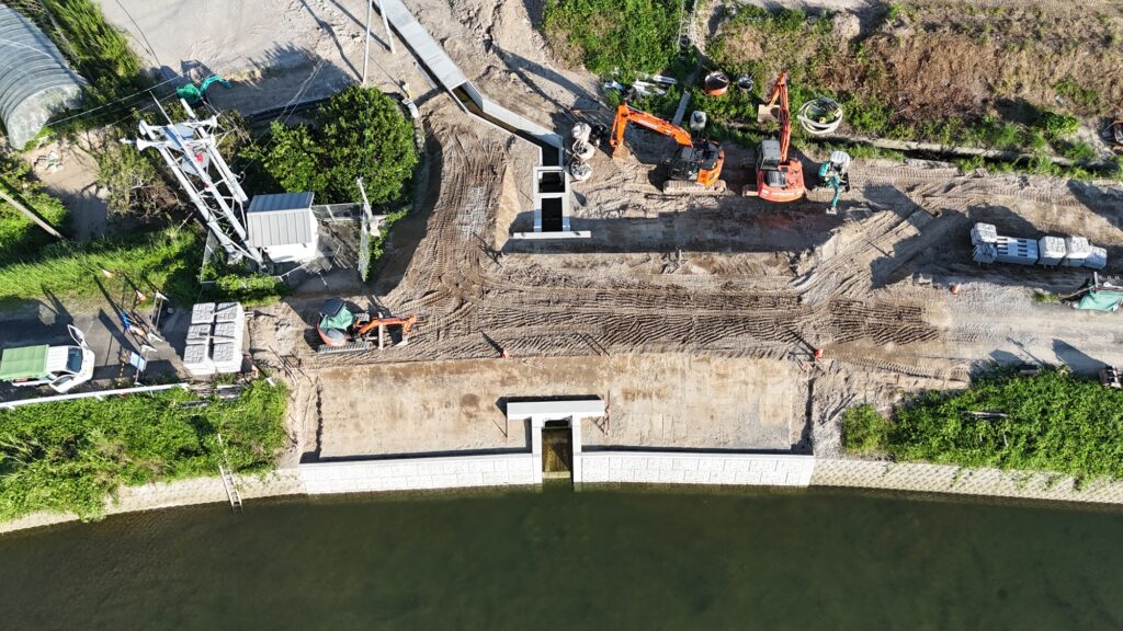 - 安茶地区の浸水対策のための樋門を築造する工事。