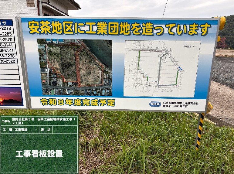 いちき串木野市川上(安茶地区)における新設工業団地の整備における排水路工事を弊社にて行っております。